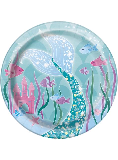 8 platos pequeños de sirenas (18 cm) - Sirena bajo del mar