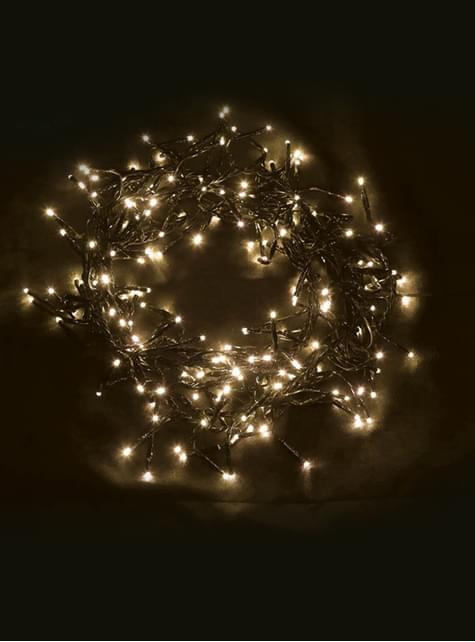 Incluye: guirnalda de 5,5 metros. Con 240 luces LED blancas, multifunción con 8 movimientos. Con enchufe (220v) y transformador a baja tensión (12/24v)