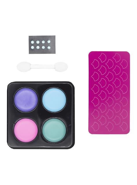 Incluye: Paleta de maquillaje de 4 colores, aplicador, 8 gemas y 3 plantillas