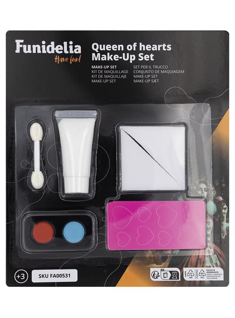 Incluye: Paleta de maquillaje de 2 colores, base blanca, aplicador, esponjas y 3 plantillas